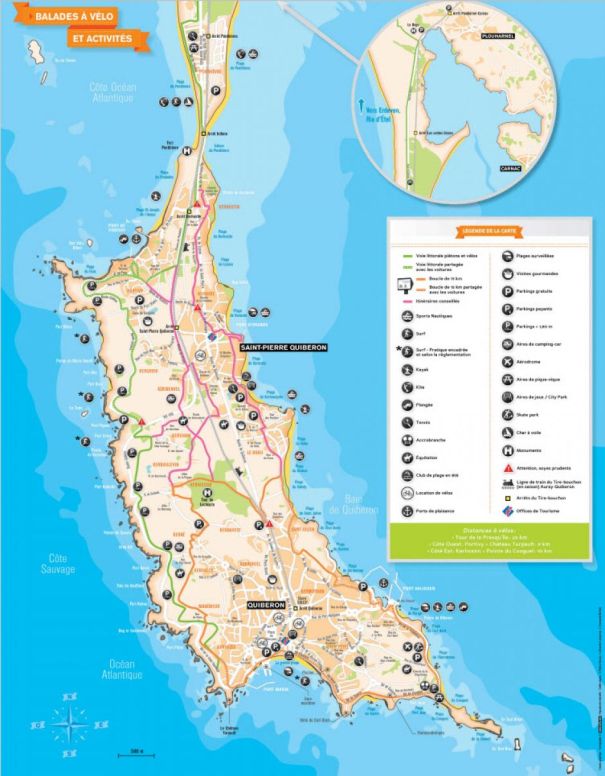 - Tourist map Quiberon with kiking trails and cycling tours