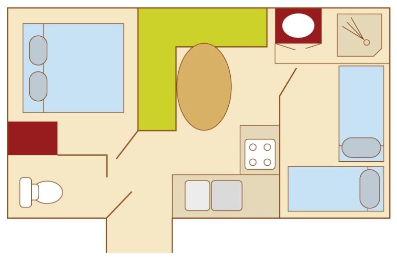 - A sofa-bed in the living area (190cm x 130cm).