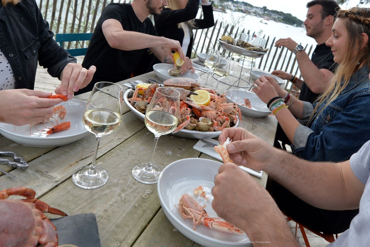Enjoy oysters, seafood platters, fish rillettes, shellfish, and crustaceans on a terrace overlooking the Crac’h river and the oyster farms.