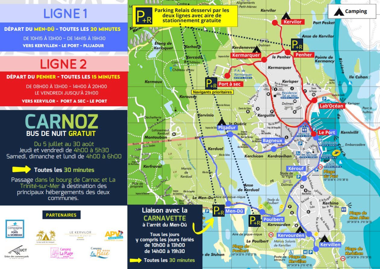 In Carnac, a free shuttle also runs from 5th July to 30th August 2025, on 3 lines. It serves: